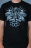 Мужская футболка американской фирмы Liquid Blue выполнена из высококачественного черного хлопкового трикотажа. Модель прямого фасона, на груди футболка украшена принтом. Используется технология изготовления футболки без боковых швов и усадки после стирки.