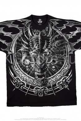 Мужская футболка американской фирмы Liquid Blue выполнена из высококачественного черного хлопкового трикотажа. Модель прямого фасона, грудь и спину футболки украшает принт. Используется технология изготовления футболки без боковых швов и усадки после стирки.